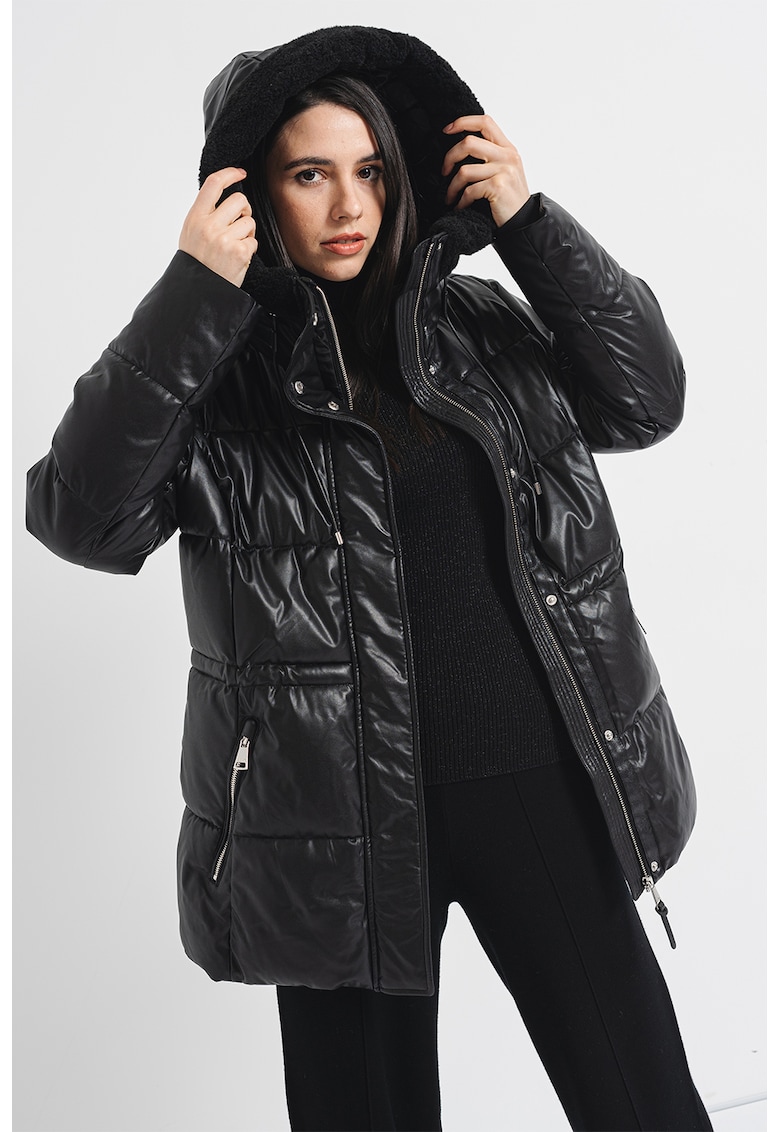 Caracteristici Tip produs: geaca Culoare: negru Imprimeu: uni Material: sintetic Croiala: regular fit Guler: inalt Gluga: cu gluga Lungime maneca: maneca lunga Buzunare: 2 oblice