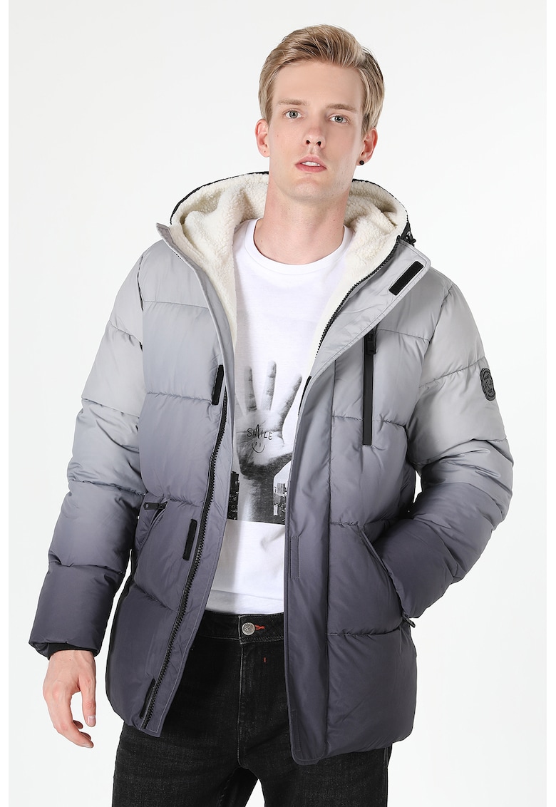 Caracteristici Culoare: gri Material: poliester Croiala: regular fit Imprimeu: uni Gluga: cu gluga Lungime maneca: maneca lunga Buzunare: buzunare exterioare Detalii: aspect in degrade