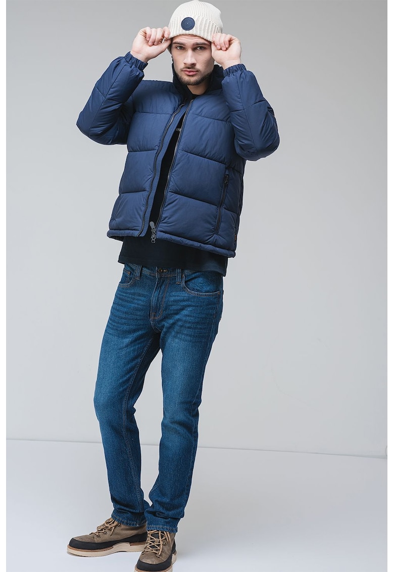 Caracteristici Tip produs: geaca Culoare: indigo Material: nylon Croiala: regular fit Imprimeu: uni Gluga: fara gluga Guler: mediu Lungime maneca: maneca lunga Buzunare: 2 cu fermoar Tehnologie: material respirabil Sistem inchidere: fermoar Compozitie Exterior: 100% nailon Info model Modelul poarta un produs de marimea M. Marimi model: 190 cm inaltime