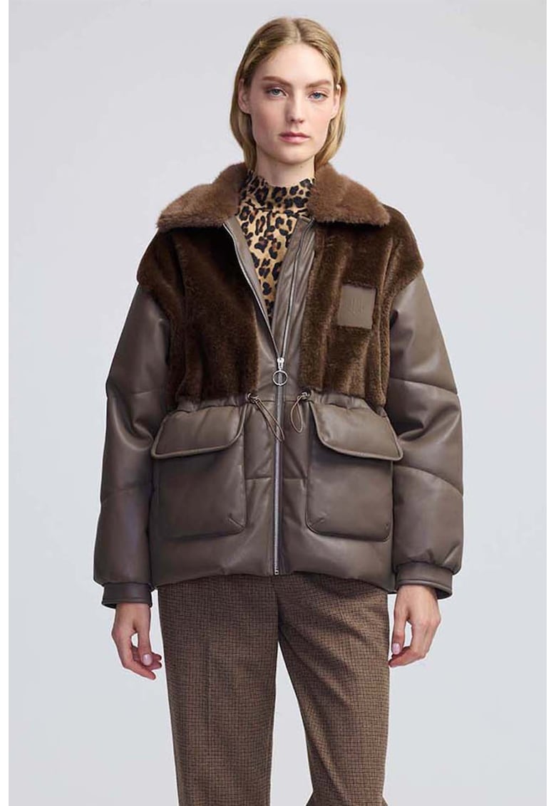 Caracteristici Tip produs: geaca Culoare: maro Imprimeu: uni Material: sintetic