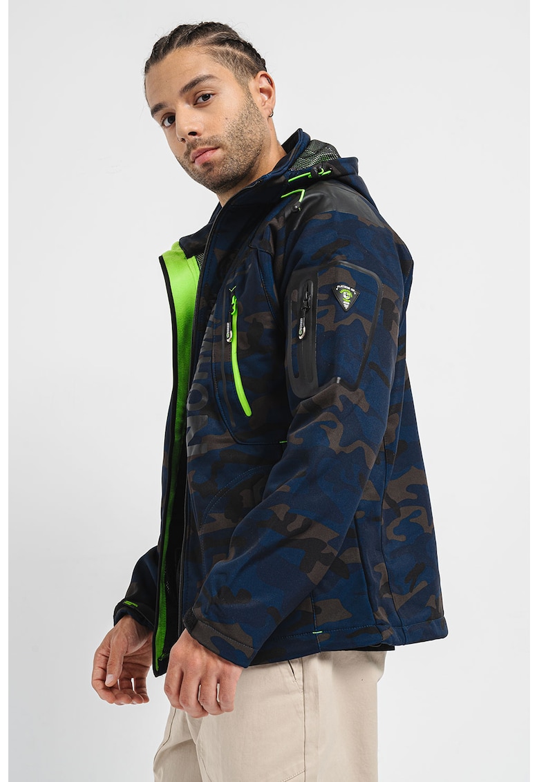 - albastru inchis Material: poliester Imprimeu: camuflaj Gluga: cu gluga Lungime maneca: maneca lunga Buzunare: multiple Sistem inchidere: fermoar Compozitie Exterior: 100% poliester Info model Modelul poarta un produs de marimea M. Marimi model: 179 cm inaltime