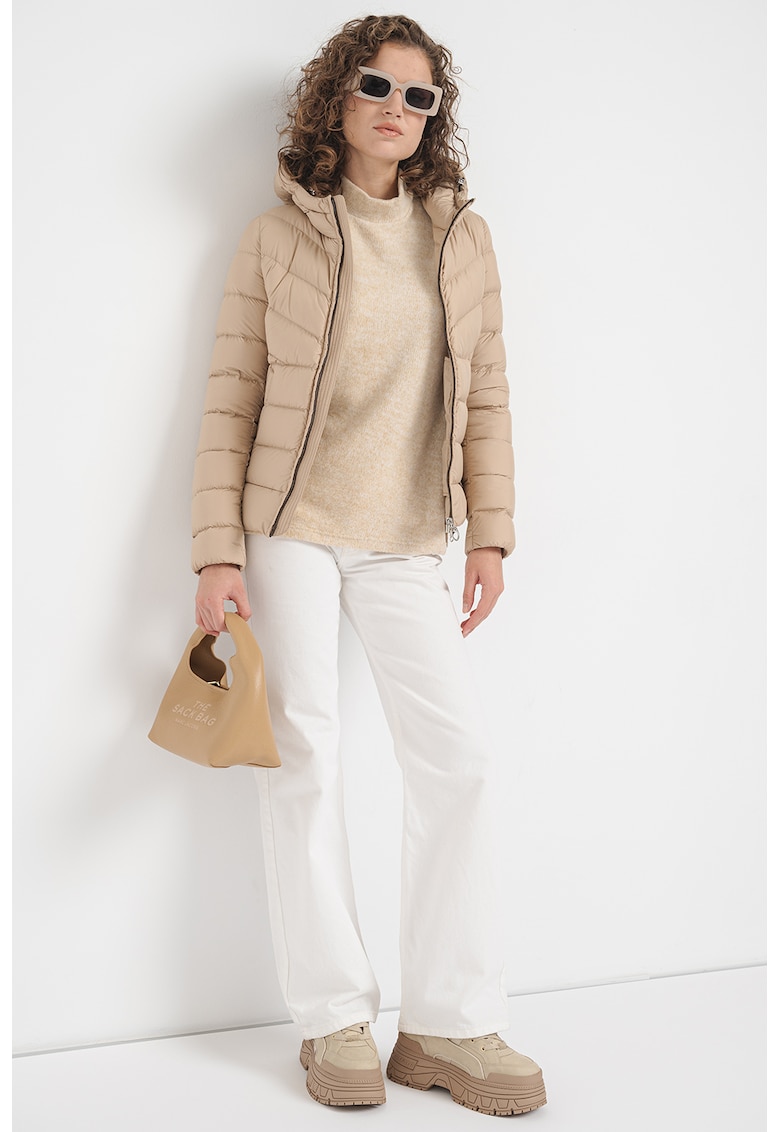 Caracteristici Tip produs: geaca Culoare: bej deschis Imprimeu: uni Material: poliester Gluga: cu gluga Lungime maneca: maneca lunga Sistem inchidere: fermoar Compozitie Exterior: 100% poliester Captuseala: 100% poliester Umplutura: 90% puf de rata
