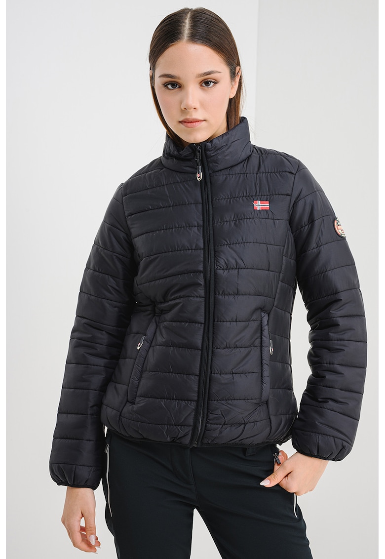 Caracteristici Tip produs: geaca Culoare: negru Imprimeu: uni Material: poliamida Croiala: regular fit Guler: mediu Gluga: fara gluga Lungime maneca: maneca lunga Buzunare: 1 interior