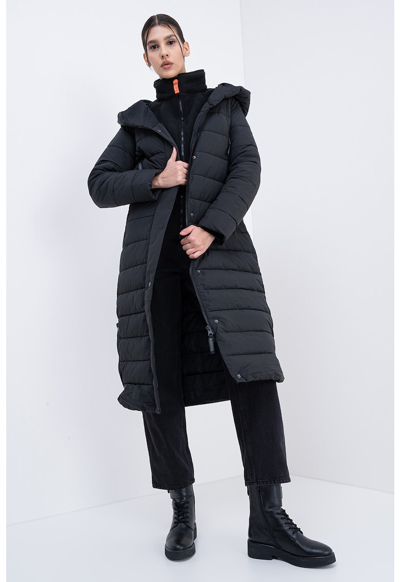 Caracteristici Tip produs: geaca Culoare: negru Imprimeu: uni Material: sintetic Croiala: regular fit Gluga: cu gluga Lungime maneca: maneca lunga Buzunare: laterale