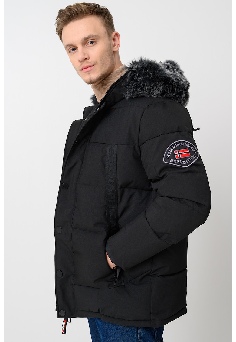 Caracteristici Tip produs: geaca Culoare: negru Material: sintetic Croiala: regular fit Imprimeu: uni Gluga: cu gluga Lungime maneca: maneca lunga Detalii: poate fi reciclata Tehnologie: cold protect