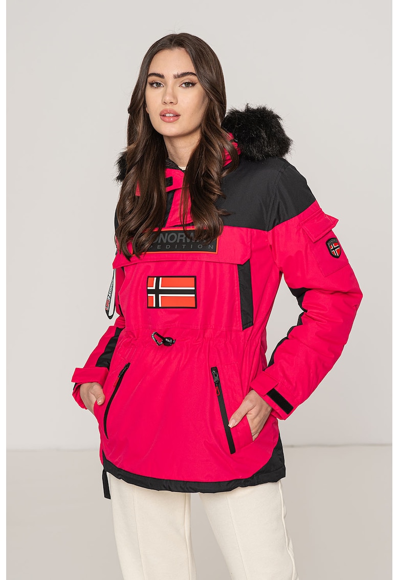 - fucsia Imprimeu: uni Material: sintetic Croiala: regular fit Gluga: cu gluga Lungime maneca: maneca lunga Buzunare: 5 exterioare Compozitie Exterior: 100% poliester Info model Modelul poarta un produs de marimea S/1 IT. Marimi model: 178 cm inaltime