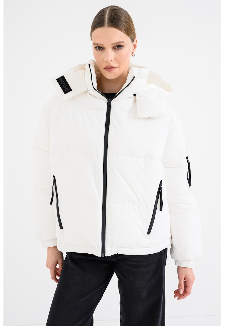 - alb optic Imprimeu: uni Material: poliamida Croiala: regular fit Gluga: cu gluga Lungime maneca: maneca lunga Buzunare: 2 cu fermoar Sistem inchidere: fermoar Compozitie Exterior: 100% poliamida reciclata Umplutura: sintetic Info model Modelul poarta un produs de marimea S. Marimi model: 176 cm inaltime