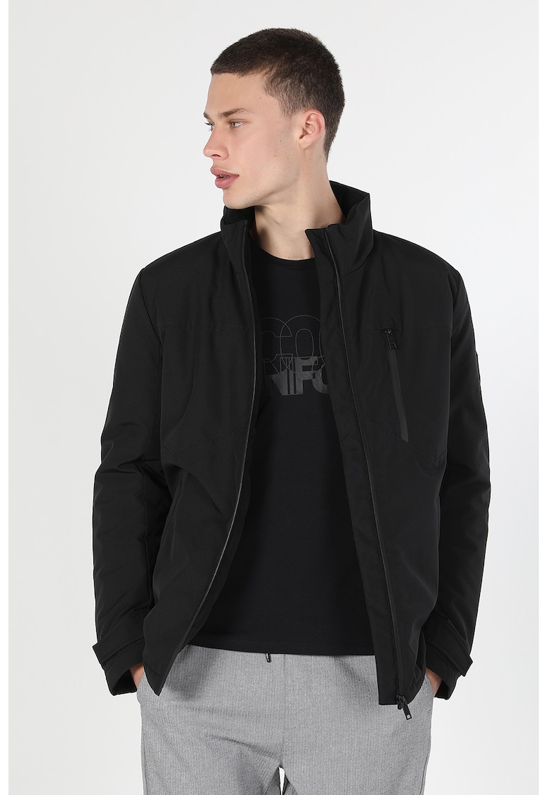 Caracteristici Culoare: negru Material: poliester Croiala: regular fit Imprimeu: uni Gluga: fara gluga Guler: inalt Maneci: mansete ajustabile Lungime maneca: maneca lunga Buzunare: 2 laterale