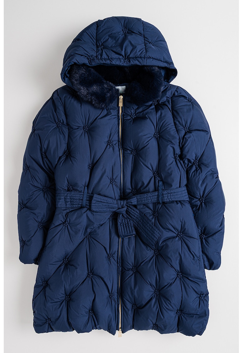 Caracteristici Tip produs: geaca Culoare: bleumarin Imprimeu: uni Croiala: regular fit Material: poliester Lungime: lunga Guler: scurt Lungime maneca: maneca lunga Detalii: cordon in talie