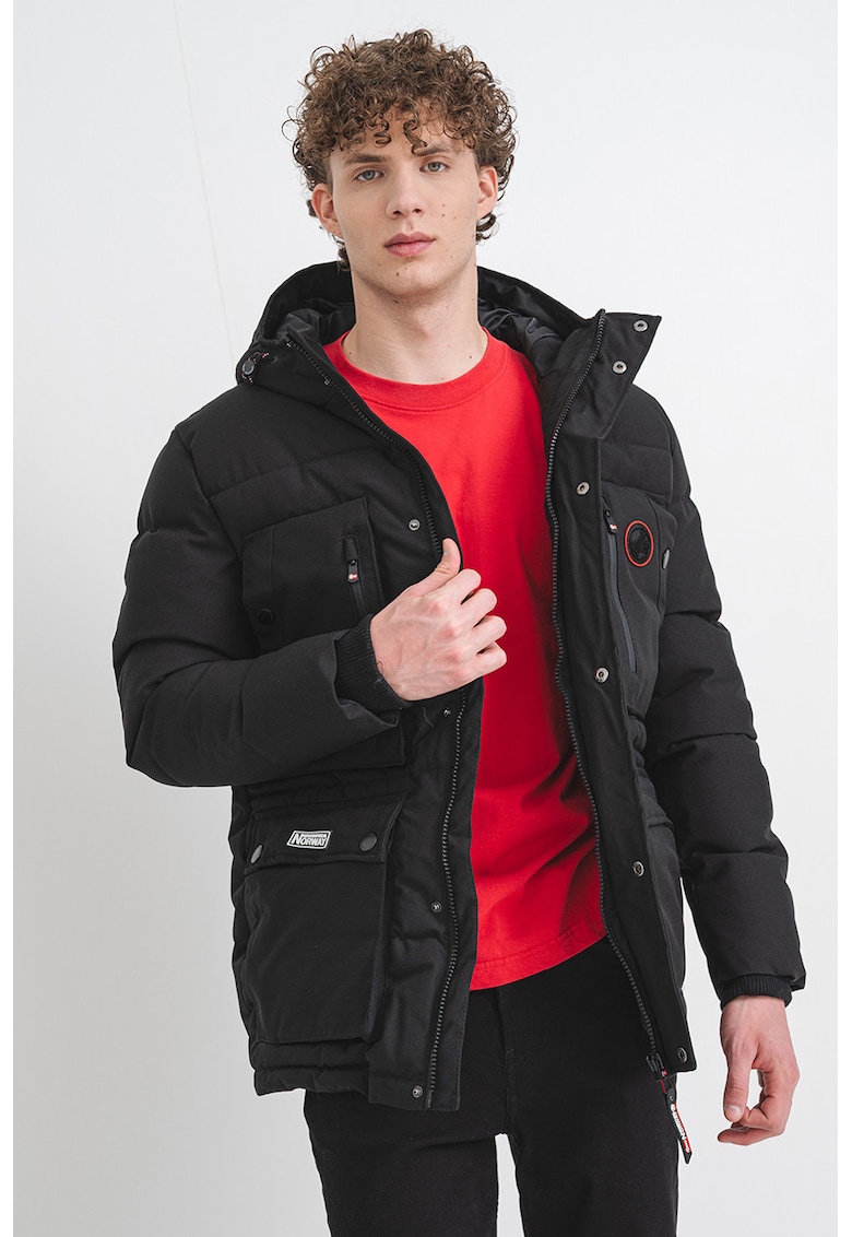 Caracteristici Tip produs: geaca Culoare: negru Material: sintetic Croiala: regular fit Imprimeu: uni Gluga: cu gluga Lungime maneca: maneca lunga Buzunare: 1 interior