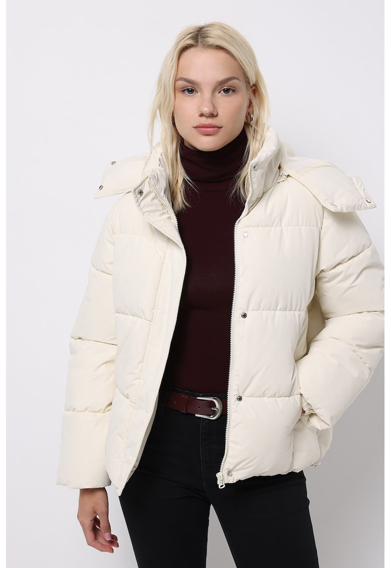 Caracteristici Tip produs: geaca Culoare: alb fildes Imprimeu: uni Material: poliester Croiala: regular fit Guler: inalt Gluga: cu gluga Lungime maneca: maneca lunga Buzunare: 2 x buzunar fata Detalii: mansete elastice