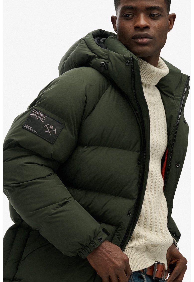 Caracteristici Tip produs: geaca Culoare: verde inchis Material: sintetic Croiala: lejer Imprimeu: logo Gluga: cu gluga Guler: inalt Lungime maneca: maneca lunga Buzunare: laterale Sistem inchidere: fermoar