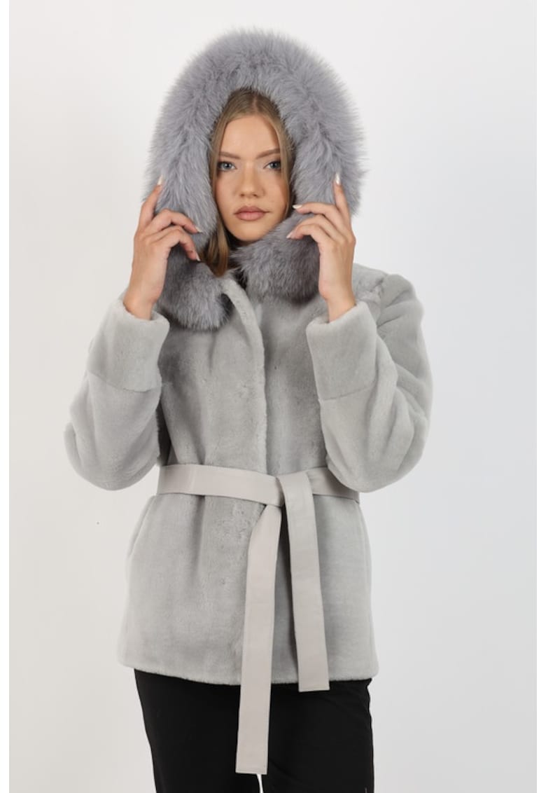Caracteristici Tip produs: geaca Culoare: gri Imprimeu: uni Material: blana naturala Croiala: regular fit Gluga: cu gluga Lungime maneca: maneca lunga Buzunare: 2 oblice Detalii: calduroasa Tehnologie: impermeabil Sistem inchidere: sistem metalic Compozitie Exterior: blana naturala de miel Captuseala: 100% poliester Umplutura: fara umplutura Material garnituri: 100 % blana de vulpe polara