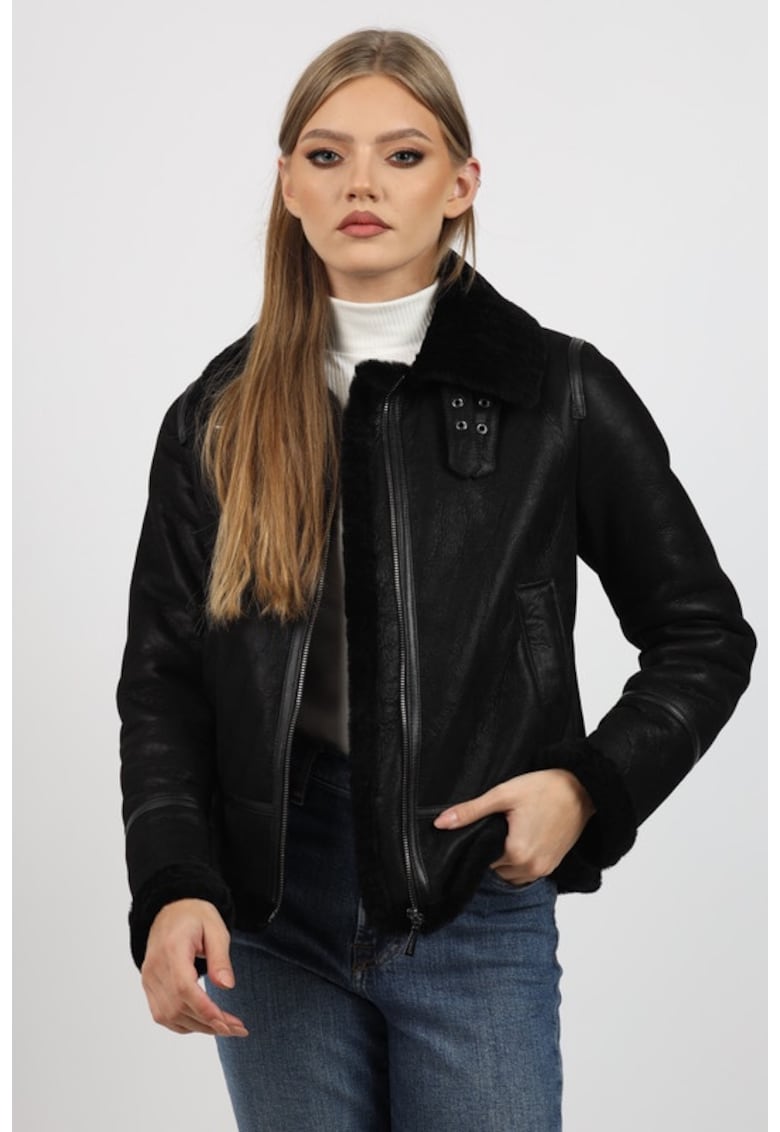 Caracteristici Tip produs: geaca Culoare: negru Imprimeu: uni Material: blana naturala Croiala: regular fit Gluga: fara gluga Lungime maneca: maneca lunga Buzunare: 2 oblice Detalii: calduroasa Tehnologie: impermeabil Sistem inchidere: fermoar Compozitie Exterior: blana naturala de miel Captuseala: fara captuseala Umplutura: fara umplutura Material garnituri: fara garnituri