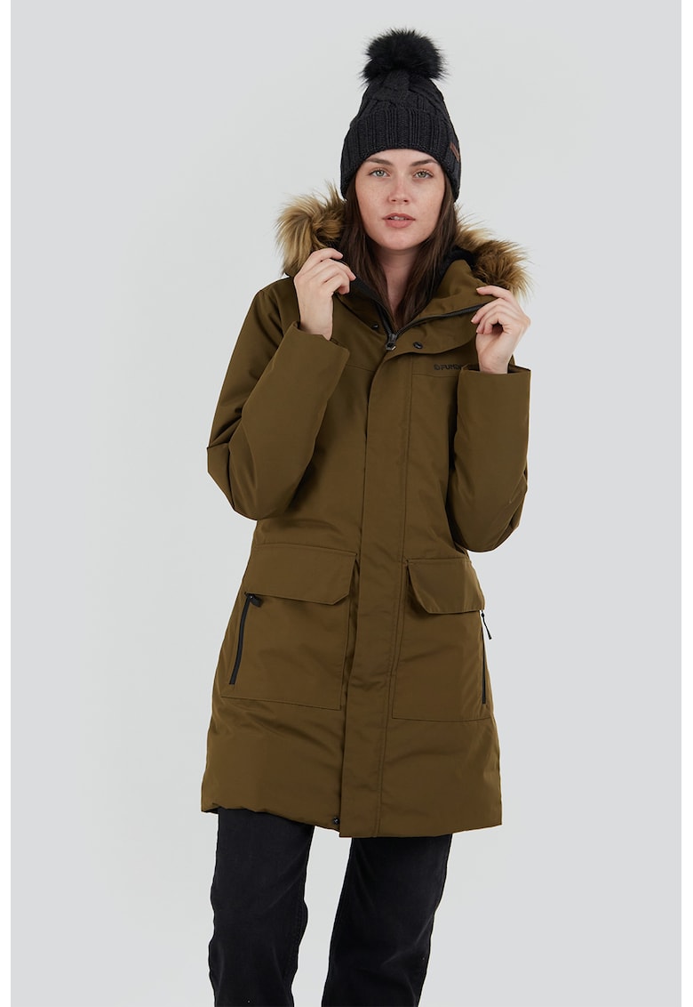 Caracteristici Tip produs: geaca Culoare: maro scortisoara Imprimeu: uni Material: poliester Croiala: regular fit Gluga: cu gluga Maneci: mansete ajustabile Lungime maneca: maneca lunga Buzunare: 2 aplicate Detalii: impermeabilitate 3000 mm