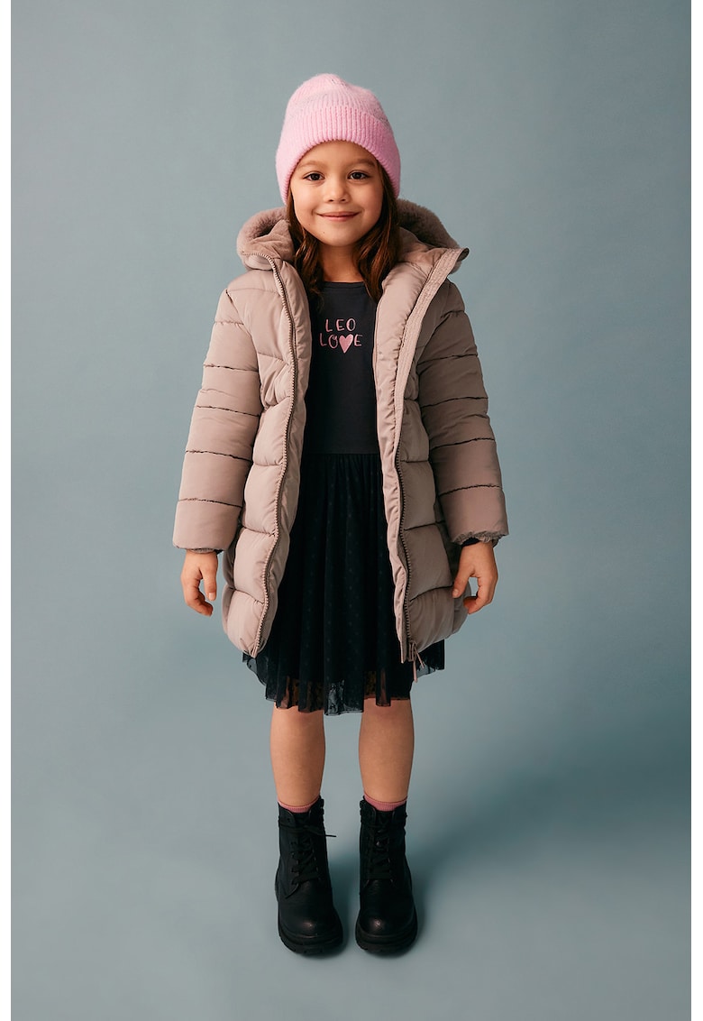 Caracteristici Tip produs: geaca Culoare: grej Imprimeu: uni Croiala: regular fit Material: poliester Lungime: lunga Buzunare: laterale Lungime maneca: maneca lunga Sistem inchidere: fermoar Colectie: primavara