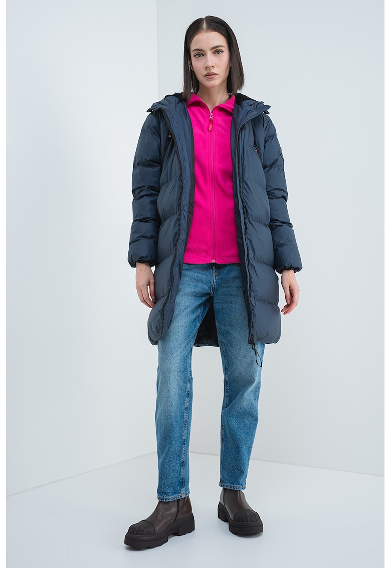 Caracteristici Tip produs: geaca Culoare: bleumarin Imprimeu: uni Material: poliamida Croiala: lejer Gluga: cu gluga Lungime maneca: maneca lunga Buzunare: 4 frontale Sistem inchidere: fermoar Compozitie Exterior: 100% poliamida Captuseala: 100% poliester Umplutura: 100% poliamida Info model Modelul poarta un produs de marimea S. Marimi model: 174 cm inaltime