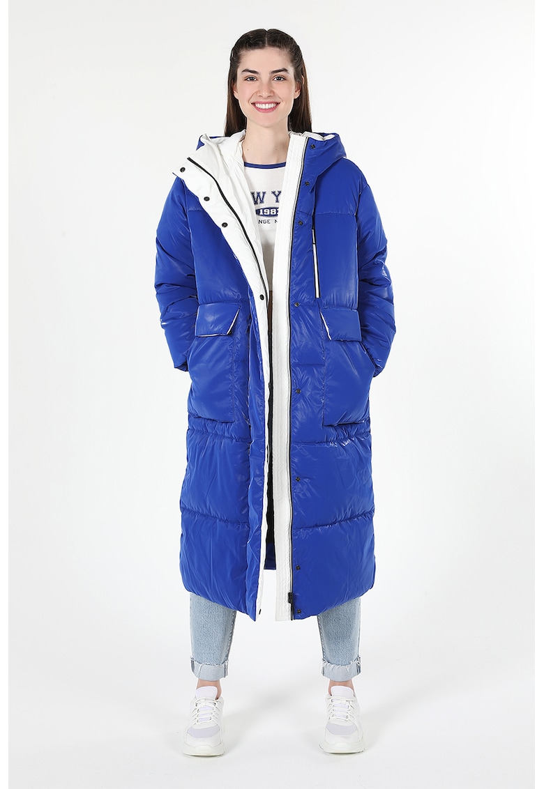 Caracteristici Tip produs: geaca Culoare: albastru royal Imprimeu: uni Material: poliester Croiala: regular fit Gluga: cu gluga Lungime maneca: maneca lunga Buzunare: multiple Detalii: vatelina