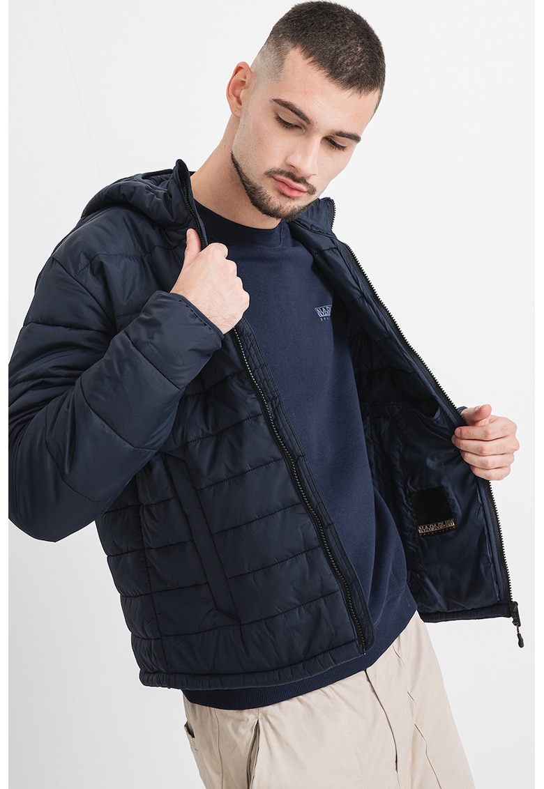 Caracteristici Tip produs: geaca Culoare: bleumarin Material: sintetic Croiala: regular fit Imprimeu: logo Gluga: cu gluga Lungime maneca: maneca lunga Buzunare: laterale Tehnologie: rezistenta la vant