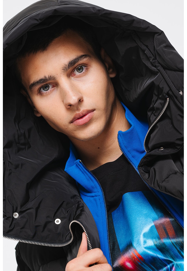 Caracteristici Tip produs: geaca Culoare: negru Material: poliester Imprimeu: uni Gluga: cu gluga Lungime maneca: maneca lunga Buzunare: 2 Sistem inchidere: fermoar