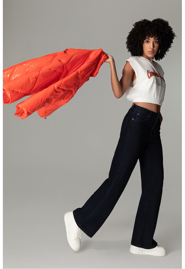 Caracteristici Culoare: portocaliu mandarina Imprimeu: uni Material: poliuretan Croiala: regular fit Guler: inalt Gluga: fara gluga Lungime maneca: maneca lunga Buzunare: 2 Detalii: aspect matlasat