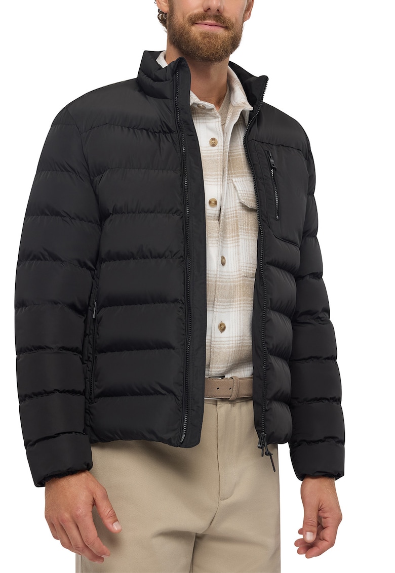 Caracteristici Tip produs: geaca Culoare: negru Material: poliester Croiala: slim fit Imprimeu: uni Gluga: fara gluga Lungime maneca: maneca lunga Buzunare: 3 Sistem inchidere: fermoar Compozitie Exterior: 100% poliester Umplutura: 100% poliester reciclat
