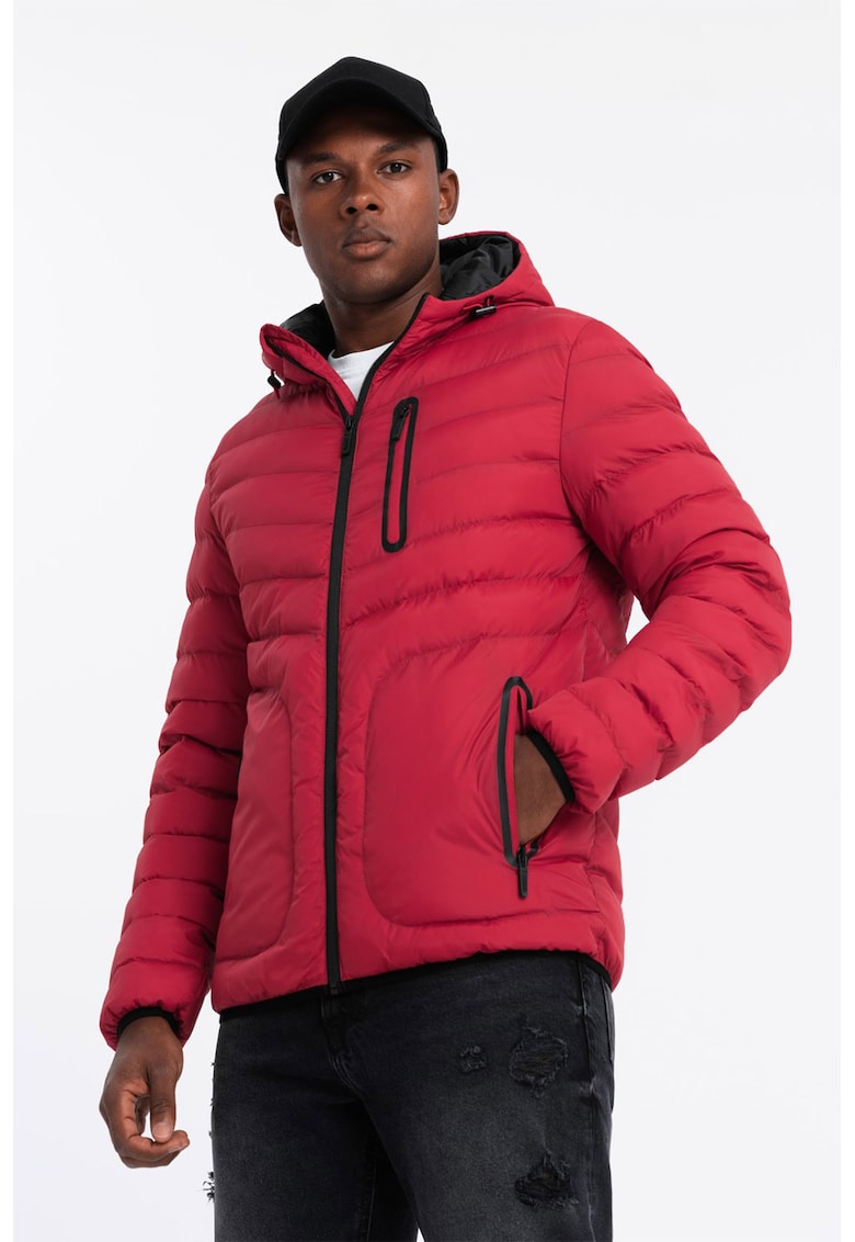 Caracteristici Tip produs: geaca Culoare: rosu Material: nylon Croiala: regular fit Imprimeu: logo Gluga: cu gluga Lungime maneca: maneca lunga Buzunare: 3 cu fermoar Sistem inchidere: fermoar Compozitie Exterior: 100% poliamida Captuseala: 100% poliester Umplutura: 100% poliester