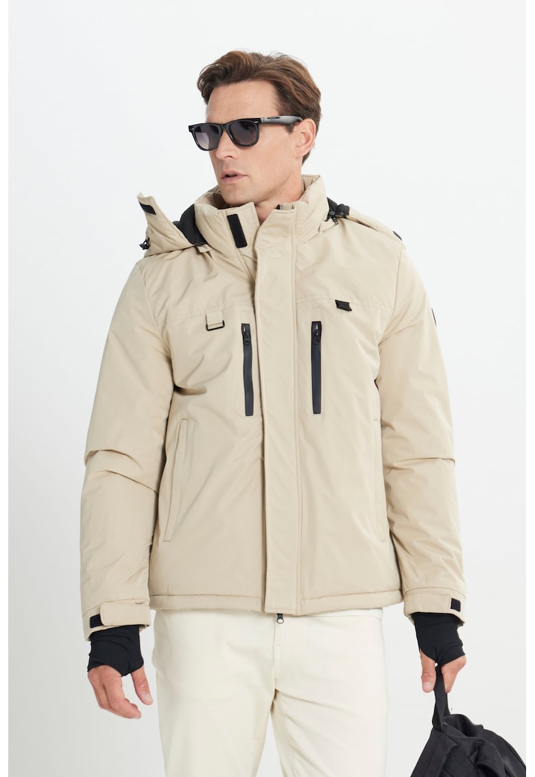 Caracteristici Tip produs: geaca Culoare: bej deschis Material: poliester Croiala: regular fit Imprimeu: uni Gluga: cu gluga Lungime maneca: maneca lunga Buzunare: 2 Detalii: slituri pentru degetul mare Tehnologie: impermeabila Sistem inchidere: fermoar Compozitie Exterior: 100% poliester