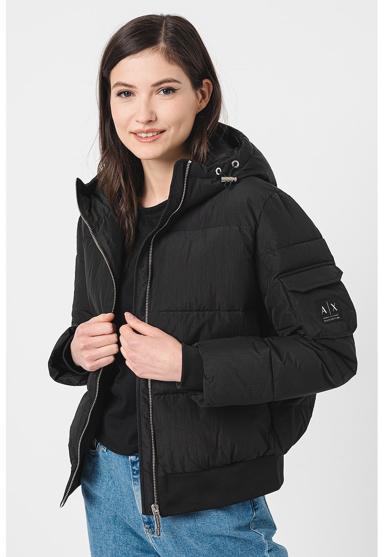 Caracteristici Tip produs: geaca Culoare: negru Imprimeu: uni Material: poliamida Croiala: regular fit Gluga: cu gluga Lungime maneca: maneca lunga Sistem inchidere: fermoar Compozitie Exterior: 100% poliamida Captuseala: 100% poliamida Umplutura: 100% poliester Info model Modelul poarta un produs de marimea S. Marimi model: 176 cm inaltime