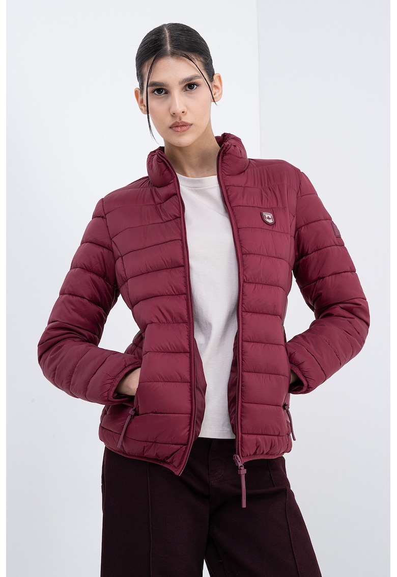Caracteristici Tip produs: geaca Culoare: visiniu Imprimeu: uni Material: sintetic Croiala: regular fit Guler: mediu Gluga: fara gluga Lungime maneca: maneca lunga Buzunare: 2 laterale