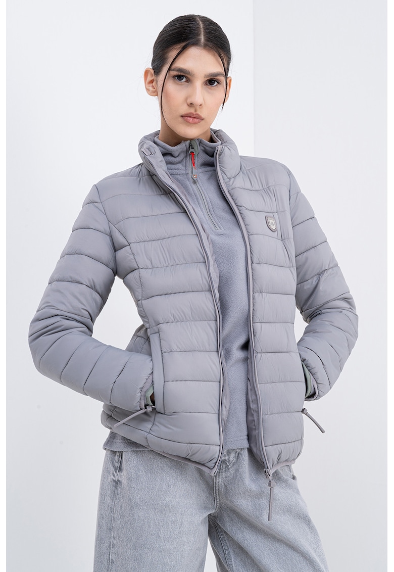 Caracteristici Tip produs: geaca Culoare: gri deschis Imprimeu: uni Material: sintetic Croiala: regular fit Guler: mediu Gluga: fara gluga Lungime maneca: maneca lunga Buzunare: 2 laterale