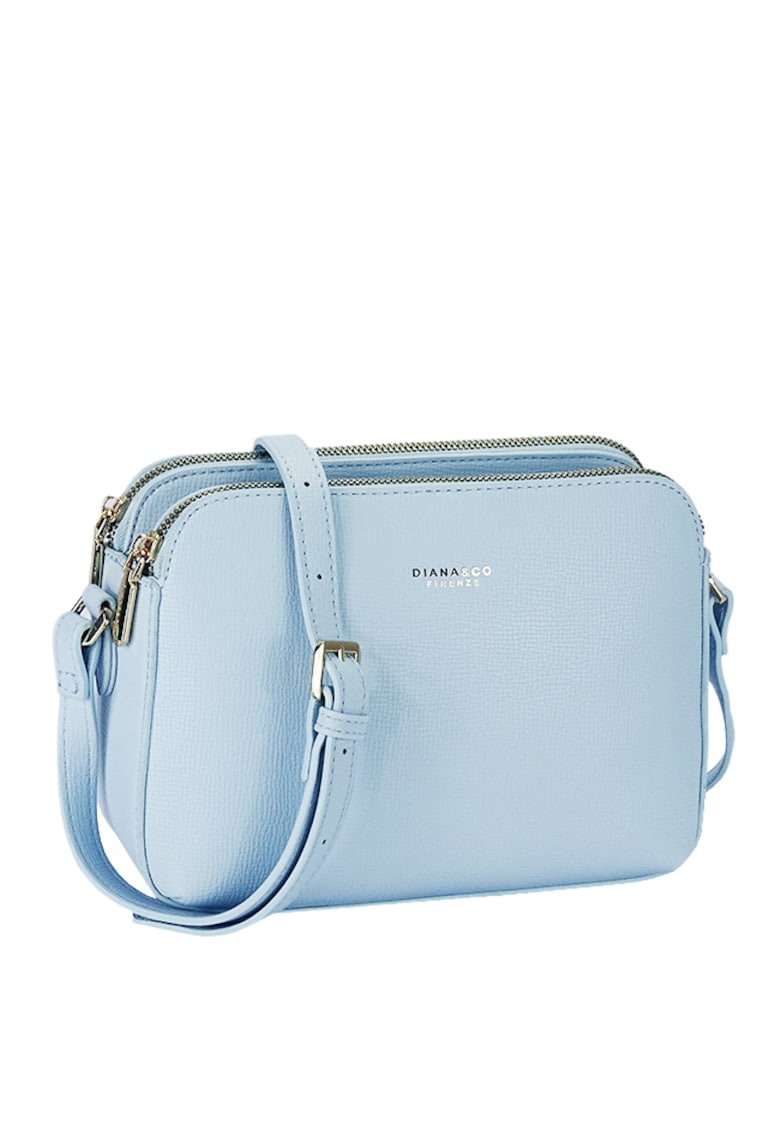 Caracteristici Culoare: albastru deschis Material: piele ecologica Model: de umar Stil: casual Imprimeu: uni Barete: 1 ajustabila Buzunare: 1 interior cu fermoar Compartimente: 3 compartimente Culoare elemente metalice: auriu Sistem inchidere: fermoar Linie Brand: diana&co Compozitie Captuseala: material textil Dimensiuni Dimensiune (cm): 17.5x23x9 Lungime drop bareta: 128 cm (max)