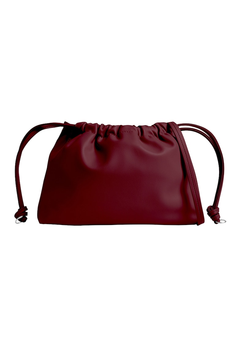 Caracteristici Culoare: visiniu Material: piele ecologica Model: bucket Stil: casual Imprimeu: uni Buzunare: interior Compartimente: un compartiment Culoare elemente metalice: argintiu Sistem inchidere: snur Compozitie Exterior: piele ecologica Dimensiuni Dimensiune (cm): 19x26x8