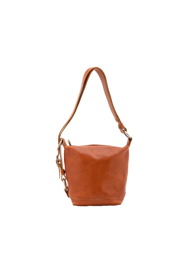 Caracteristici Culoare: maro cognac Material: piele naturala Model: bucket Stil: casual Imprimeu: uni Barete: ajustabile Compartimente: 1 compatiment principal Culoare elemente metalice: bej Sistem inchidere: fermoar Compozitie Exterior: 100% piele naturala Dimensiuni Dimensiune (cm): 22x19x13