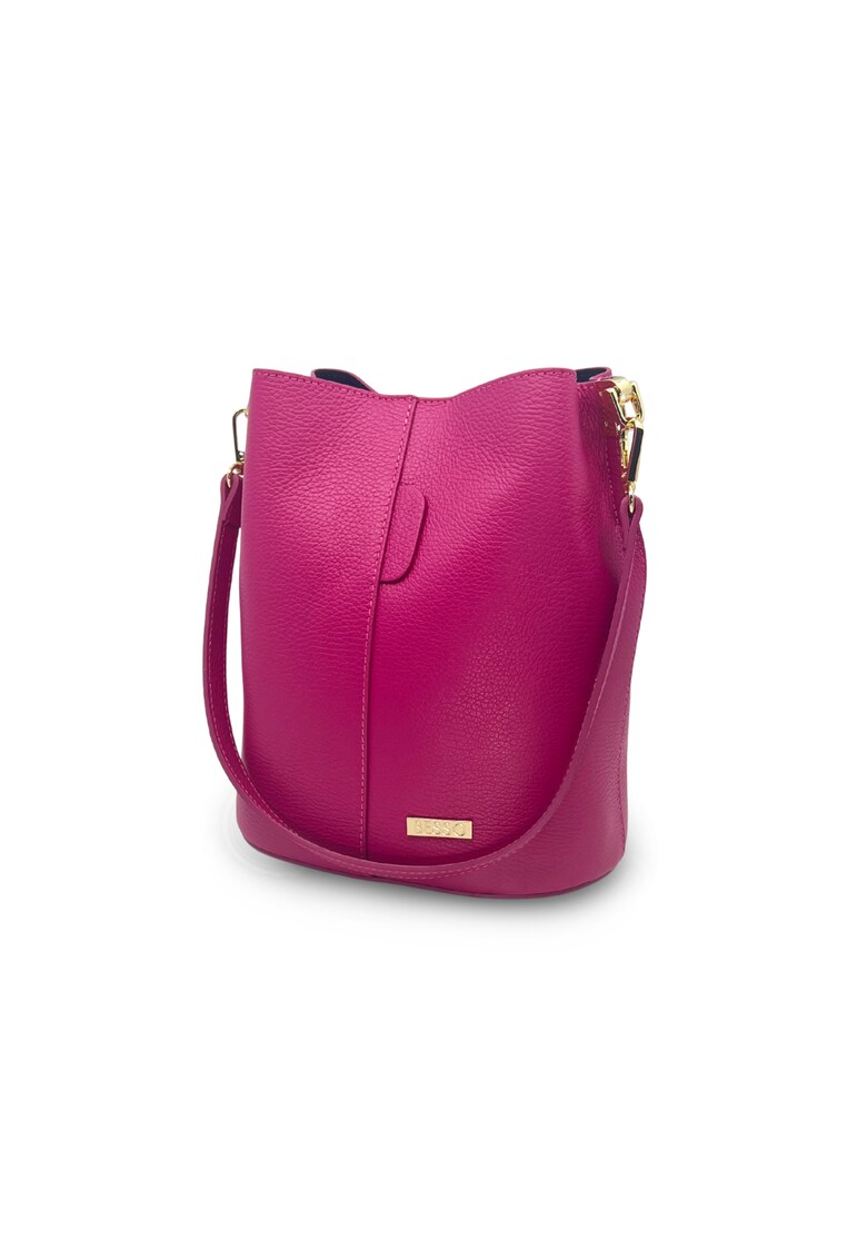 Caracteristici Culoare: fucsia Material: piele naturala Model: bucket Imprimeu: uni Maner: detasabil Buzunare: 1 interior Compartimente: unul principal Culoare elemente metalice: auriu Sistem inchidere: capse magnetice Detalii: dust bag inclusa