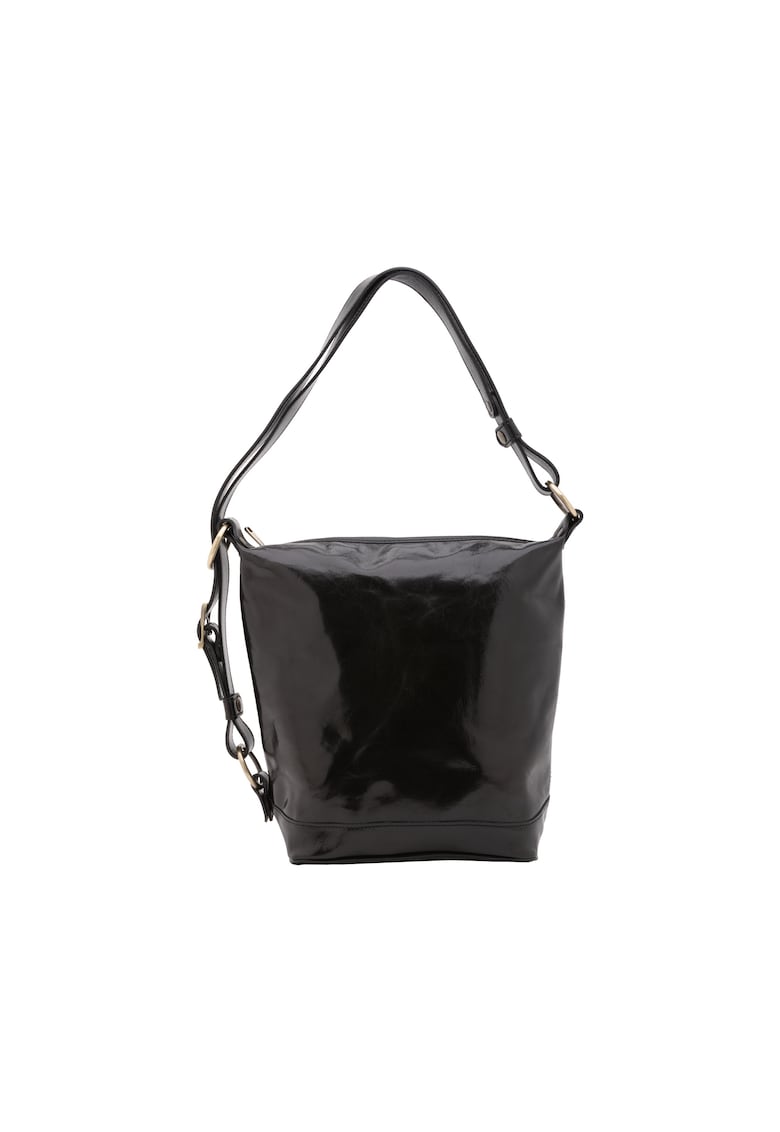 Caracteristici Culoare: negru Material: piele naturala Model: bucket Stil: casual Imprimeu: uni Barete: ajustabile Compartimente: 1 compatiment principal Sistem inchidere: fermoar Compozitie Exterior: 100% piele veritabila Dimensiuni Dimensiune (cm): 26x24x16