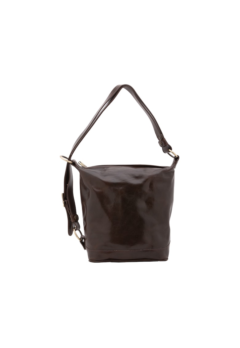 Caracteristici Culoare: maro inchis Material: piele naturala Model: bucket Stil: casual Imprimeu: uni Barete: ajustabile Compartimente: 1 compatiment principal Sistem inchidere: fermoar Compozitie Exterior: 100% piele veritabila Dimensiuni Dimensiune (cm): 26x24x16