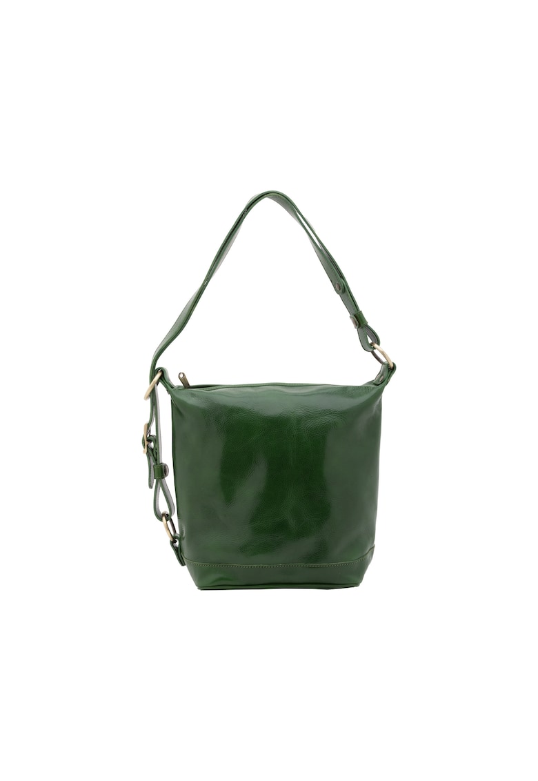 Caracteristici Culoare: verde Material: piele naturala Model: bucket Stil: casual Imprimeu: uni Barete: ajustabile Compartimente: 1 compatiment principal Sistem inchidere: fermoar Compozitie Exterior: 100% piele naturala Dimensiuni Dimensiune (cm): 26x24x16