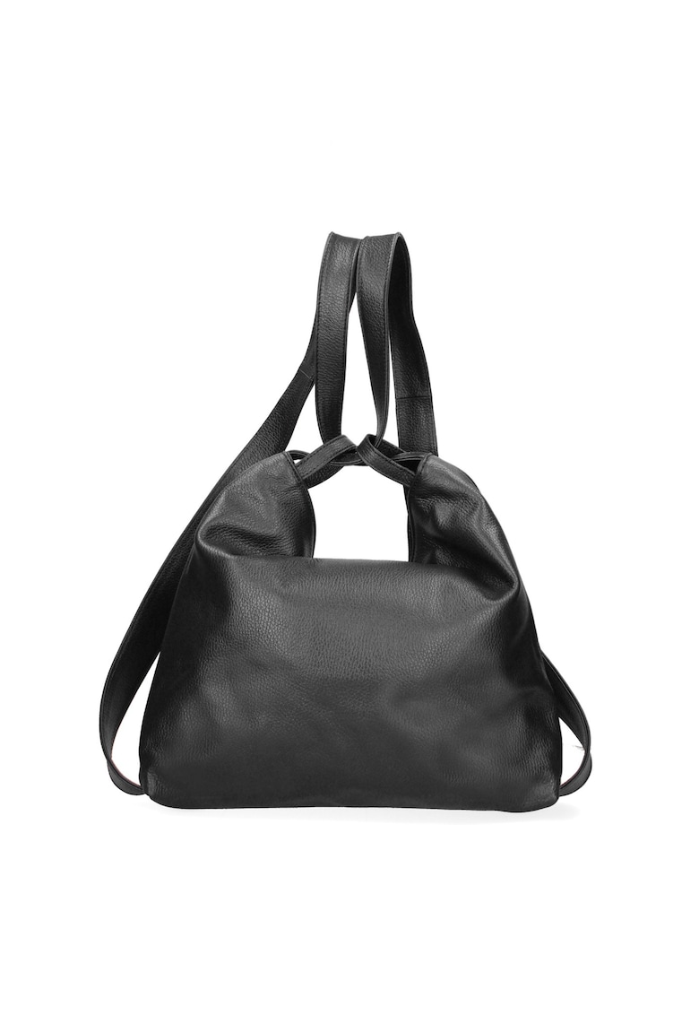 Caracteristici Culoare: negru Material: piele naturala Model: de umar Stil: casual Imprimeu: uni Barete: 2 Culoare elemente metalice: argintiu Sistem inchidere: fermoar Detalii: model convertibil din geanta cu bareta de umar in rucsac Compozitie Exterior: 100% piele Captuseala: 100% bumbac Dimensiuni Dimensiune (cm): 37x37x9