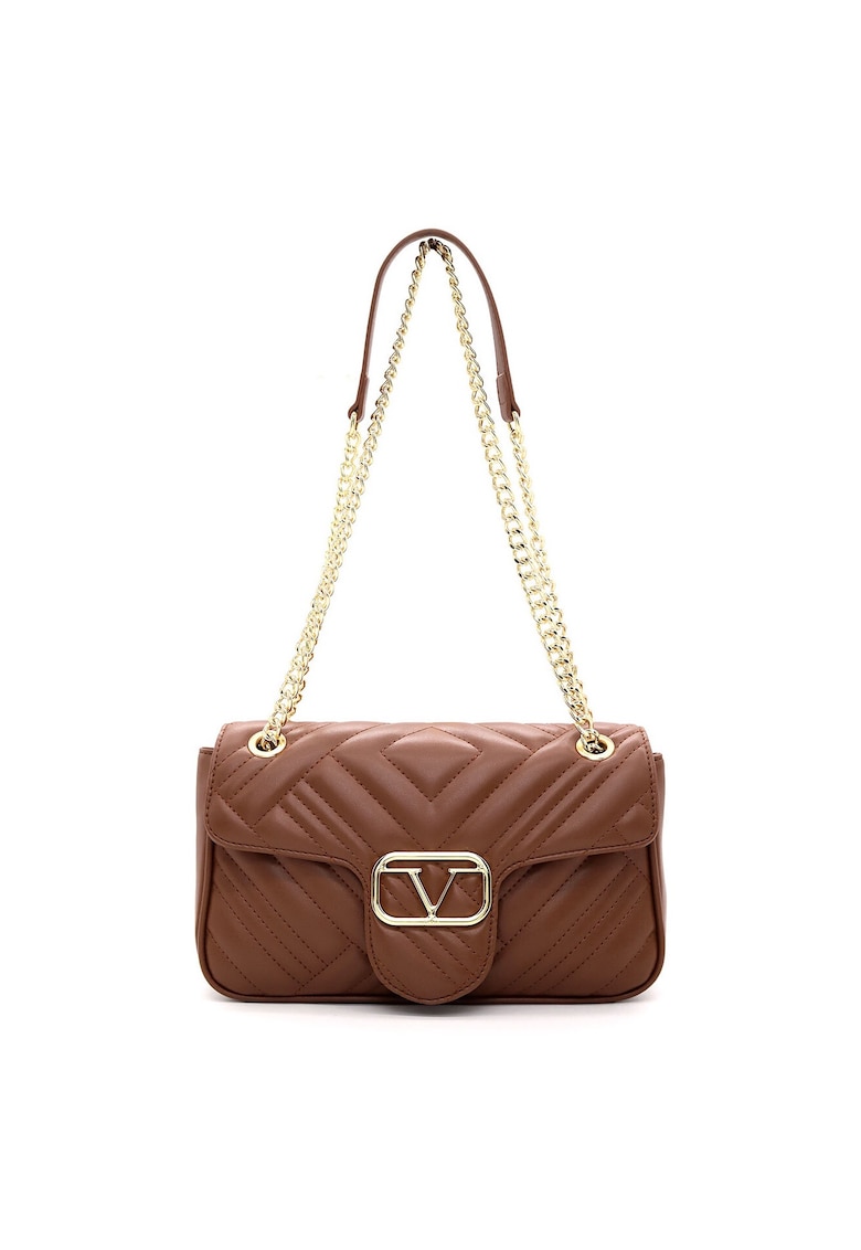 Caracteristici Culoare: maro Material: piele ecologica Model: crossbody Stil: elegant Imprimeu: logo Barete: 1 din lant