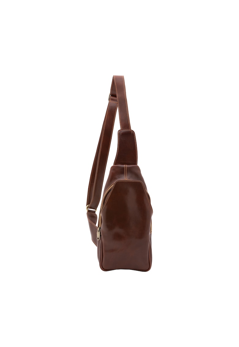 Caracteristici Culoare: maro Stil: casual Imprimeu: uni Material: piele naturala Model: crossbody Barete: ajustabile Buzunare: e buzunare exterioare Sistem inchidere: fermoar Compozitie Exterior: 100% piele naturala Dimensiuni Dimensiune (cm): 33x17x7