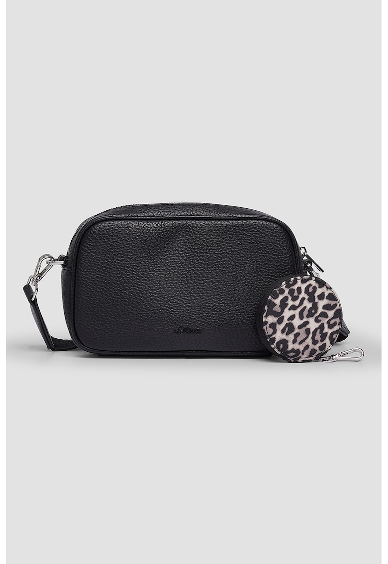 Caracteristici Culoare: negru Material: piele ecologica Model: crossbody Stil: casual Imprimeu: uni Barete: una ajustabila si detasabila Culoare elemente metalice: argintiu Sistem inchidere: fermoar Detalii: portofel detasabil Compozitie Exterior: 100% poliuretan Captuseala: 100% poliester Dimensiuni Dimensiune (cm): universal