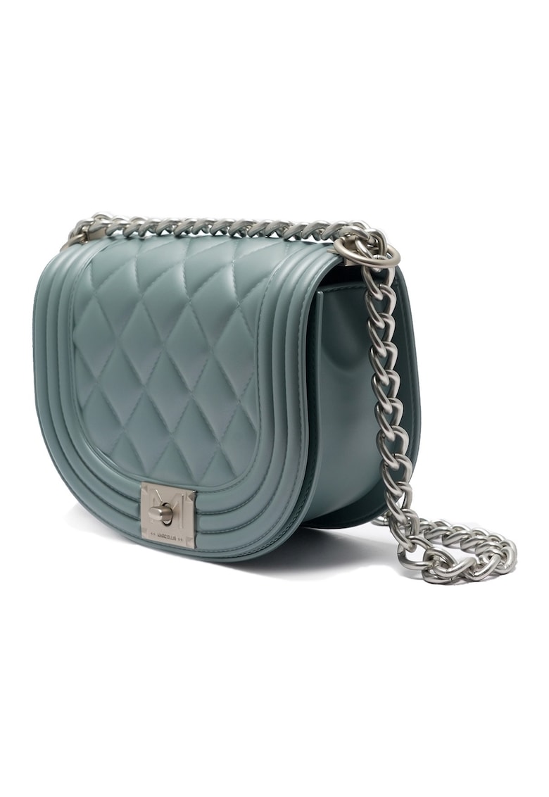 - argintiu Material: piele ecologica Model: crossbody Stil: casual Imprimeu: uni Barete: lant Compartimente: 1 Culoare elemente metalice: argintiu Sistem inchidere: sistem metalic Compozitie Exterior: pvc Captuseala: pvc Dimensiuni Dimensiune (cm): 15.5 x 20.5 x 7 cm