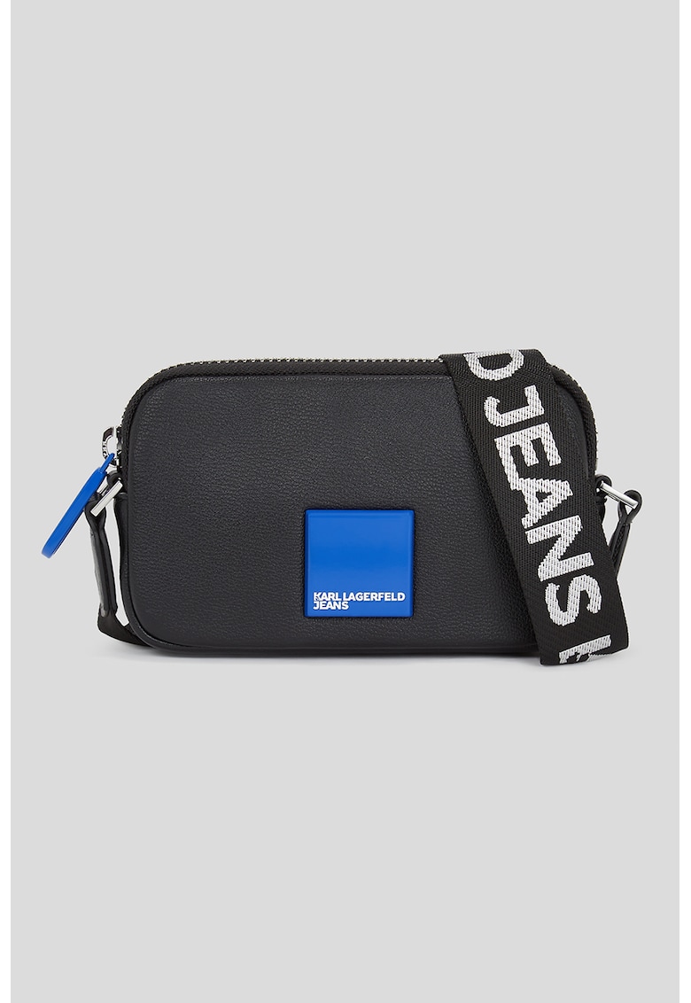 - albastru Material: piele ecologica Model: crossbody Stil: casual Imprimeu: logo Barete: una Compartimente: 1 Culoare elemente metalice: argintiu Sistem inchidere: fermoar Compozitie Exterior: 100% poliuretan Dimensiuni Dimensiune (cm): 11x17.5x2.5