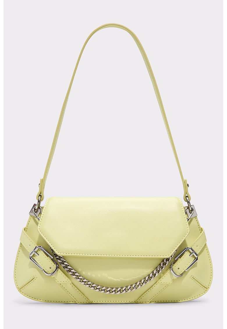 Caracteristici Culoare: galben deschis Material: piele ecologica Model: crossbody Stil: casual Imprimeu: uni Maner: fix Compartimente: unul principal Culoare elemente metalice: auriu Sistem inchidere: clapeta Detalii: lant detasabil Compozitie Exterior: polyuretan Dimensiuni Dimensiune (cm): 30x42x6