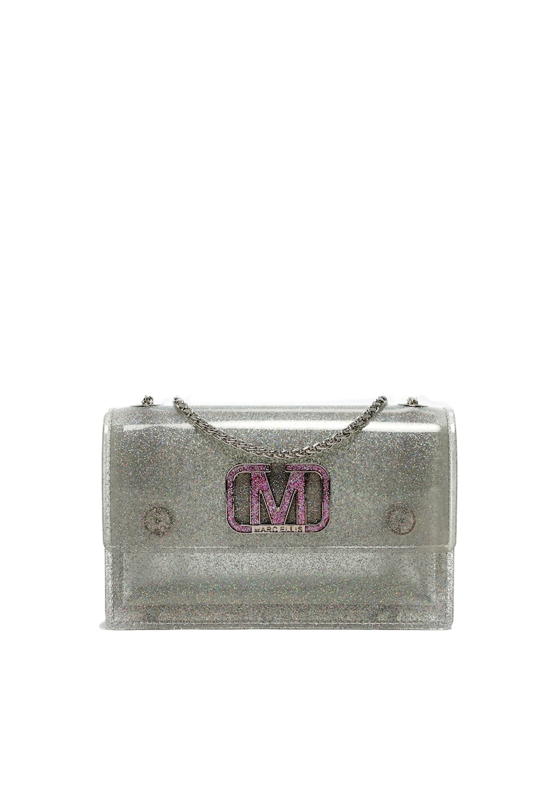 - argintiu Material: piele ecologica Model: crossbody Stil: casual Imprimeu: logo Barete: lant Compartimente: 1 principal Culoare elemente metalice: argintiu Sistem inchidere: capse Compozitie Exterior: 100% pvc Dimensiuni Dimensiune (cm): 13x20x7.6