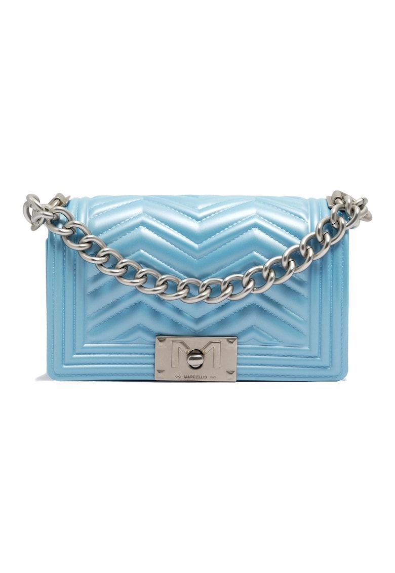 - argintiu Material: pvc Model: crossbody Stil: casual Imprimeu: uni Barete: lant Culoare elemente metalice: argintiu Sistem inchidere: sistem metalic Compozitie Exterior: pvc Captuseala: pvc Dimensiuni Dimensiune (cm): 10 x 18 x 9