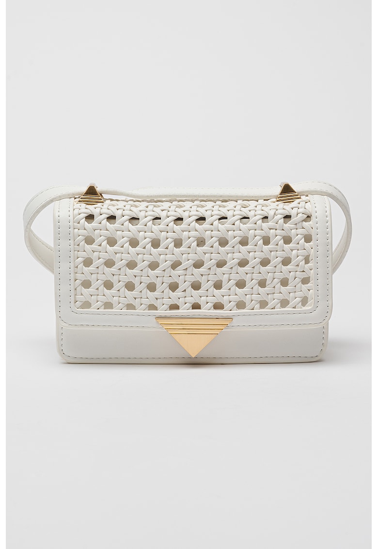 Caracteristici Culoare: alb optic Material: poliuretan Model: crossbody Stil: casual Imprimeu: uni Barete: ajustabile si convertibile Buzunare: 2 interioare Compartimente: 1 Culoare elemente metalice: auriu Sistem inchidere: sistem metalic Detalii: model cu perforatii Compozitie Exterior: 100% poliuretan Captuseala: 100% poliester Dimensiuni Dimensiune (cm): 11 x 19 x 6 cm