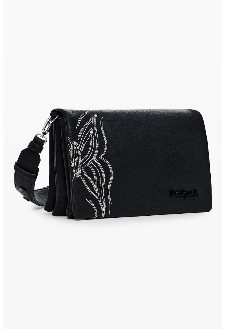Caracteristici Culoare: negru Material: poliuretan Model: crossbody Stil: casual Imprimeu: cu model Barete: ajustabile si detasabile Compartimente: 1 Culoare elemente metalice: argintiu Sistem inchidere: clapeta Compozitie Exterior: 100% poliuretan Dimensiuni Dimensiune (cm): 16x25x6