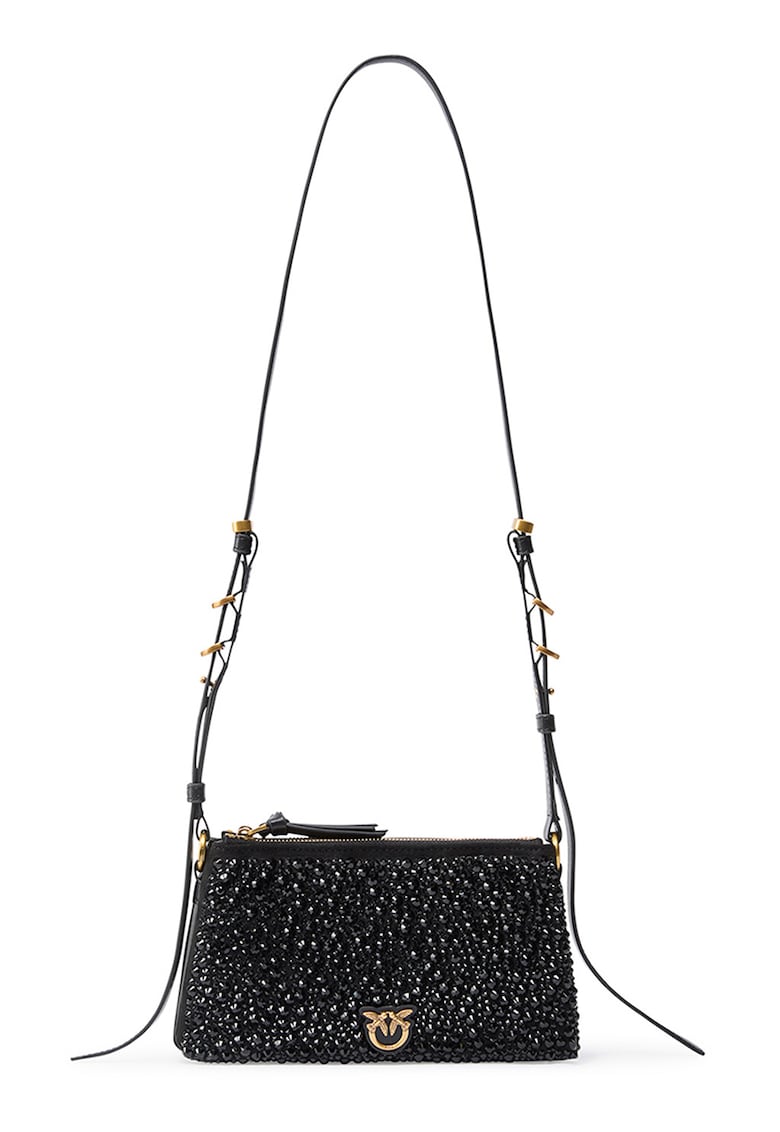Caracteristici Culoare: negru Material: textil Model: crossbody Stil: casual Imprimeu: uni Barete: ajustabile Culoare elemente metalice: auriu Sistem inchidere: fermoar Detalii: strasuri Compozitie Exterior: textile Dimensiuni Dimensiune (cm): 12x22x3